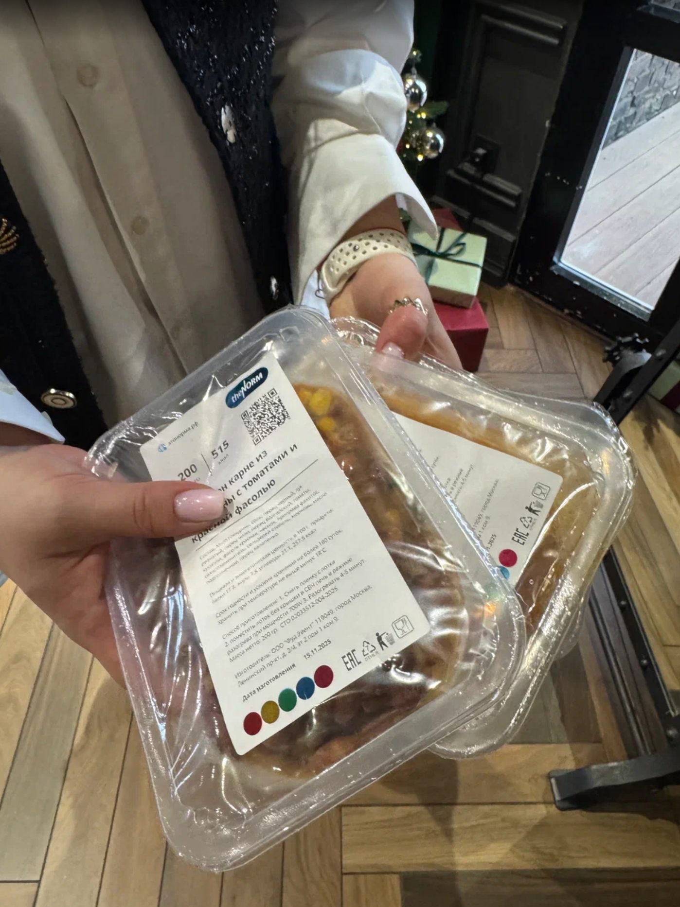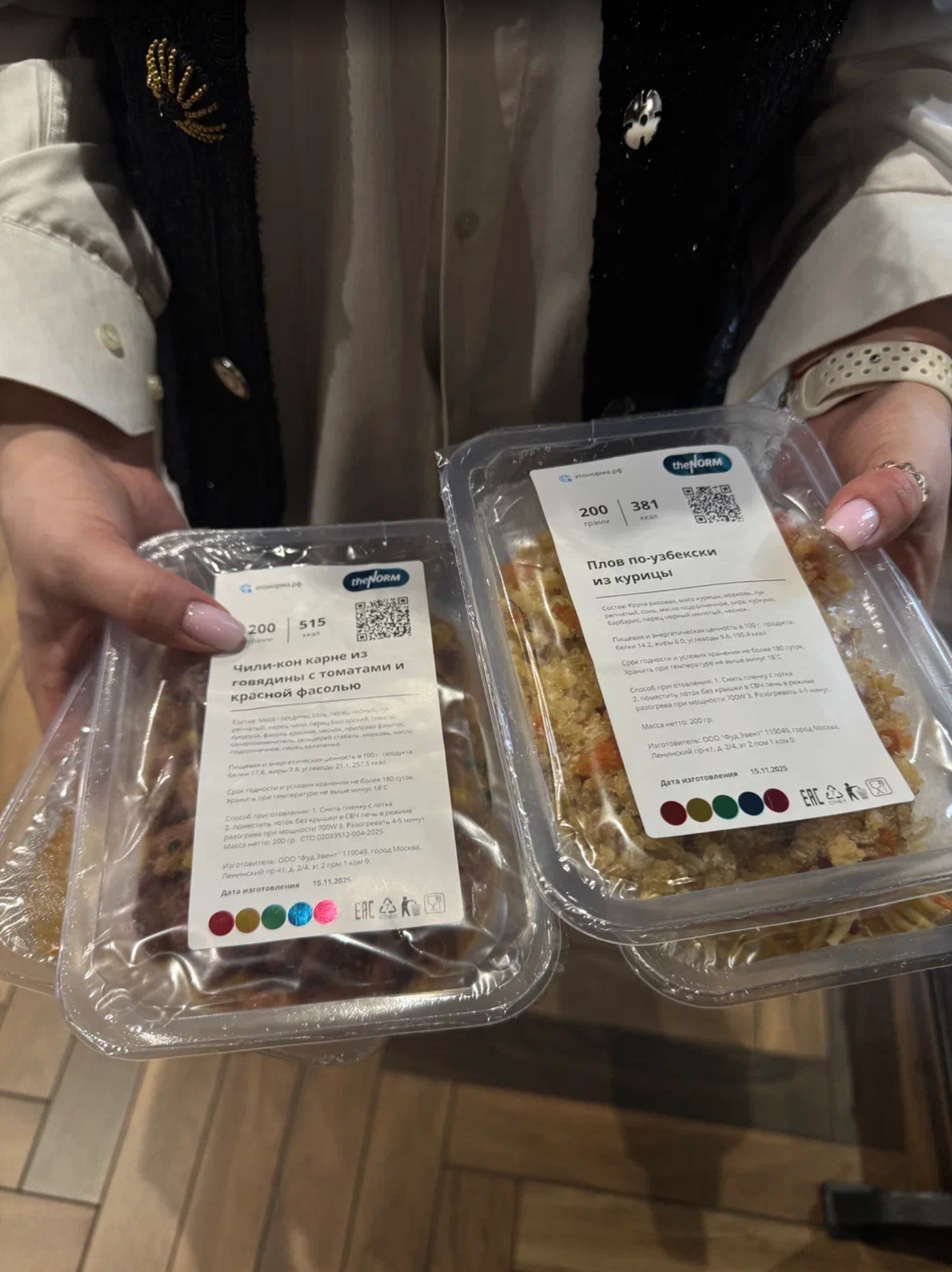 Способ приготовления блюд в наборе: Удалить защитную пленку с верхней части упаковки. Разогревать в микроволновой печи течении 5 минут, мощность 700W.